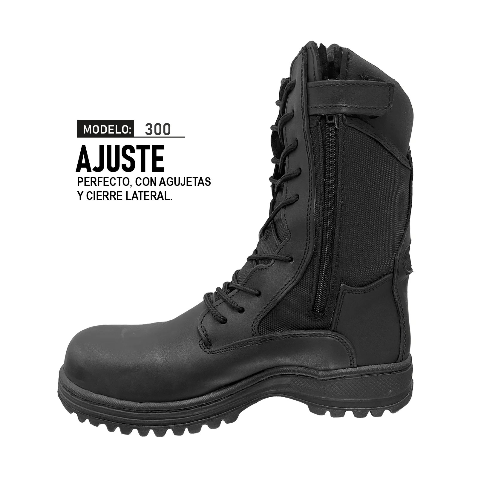 Bota táctica con cierre, ideal para profesiones como fuerzas de seguridad, trabajos industriales, construcción, emergencias y actividades al aire libre.