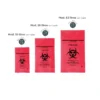 Combo bote de basura Estrabins con tapa vaivén o balancín y paquete con 100 Bolsas rojas para RPBI, con fuelle y calibre 200.