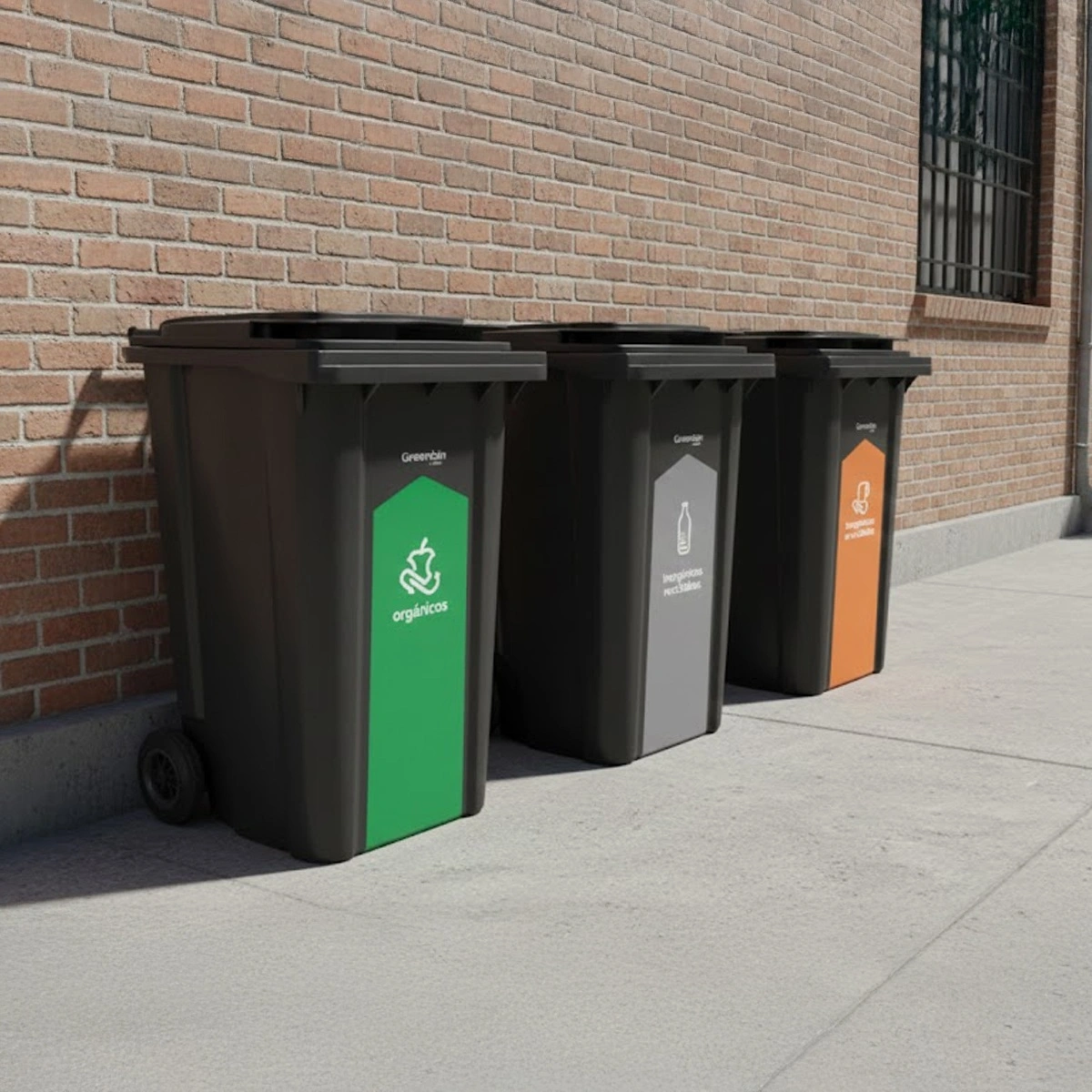 • Incluye señalizaciones: Gris (Inorgánicos reciclables), Naranja (Inorgánicos no reciclables) y Verde (Orgánicos).