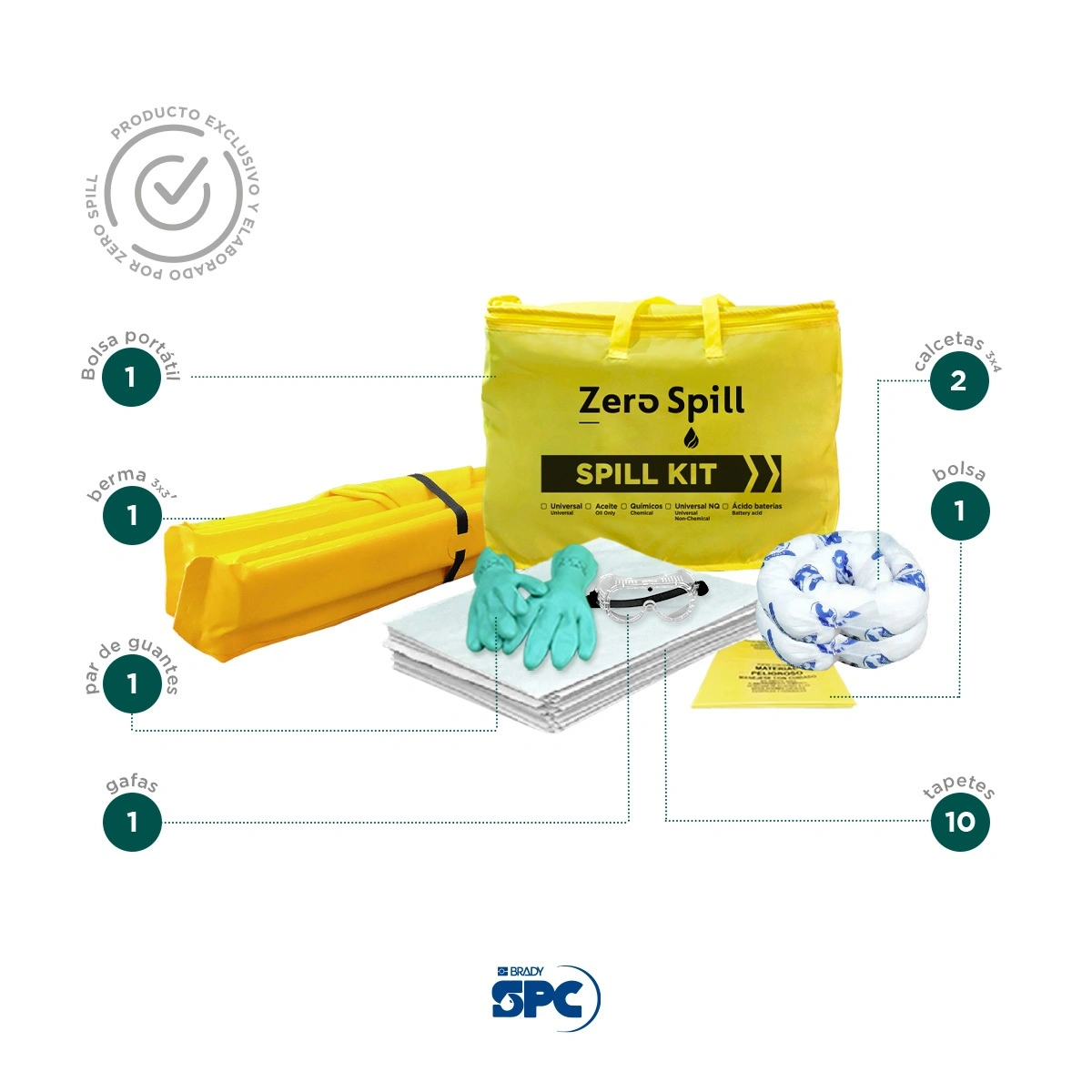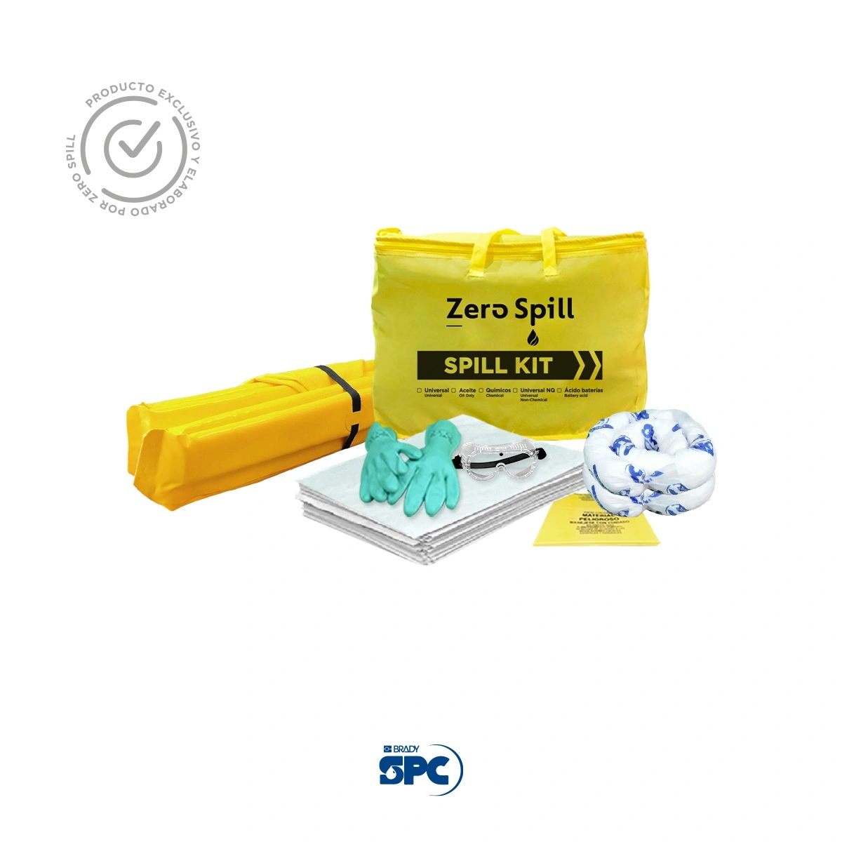 - Los kits portátiles para derrames de Brady SPC® combinan absorbentes, accesorios, EPP y directrices para que se pueda preparar para emergencias cuando ocurra un derrame.