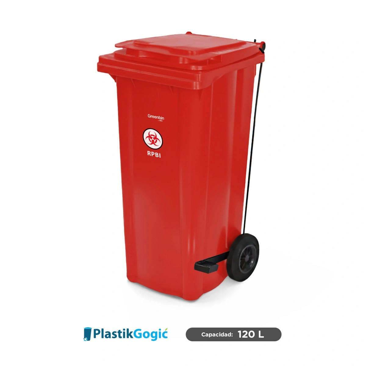 Los contenedores con 2 ruedas y pedal de 120 L personalizado para la gestión de residuos peligrosos (RPBI) de la marca Plastik Gogic, están hechos de polietileno de alta densidad (HDPE), lo que les confiere una gran durabilidad y resistencia a impactos, así como a diversas condiciones climáticas, son una opción ideal debido a su robustez y facilidad de uso.