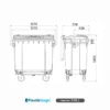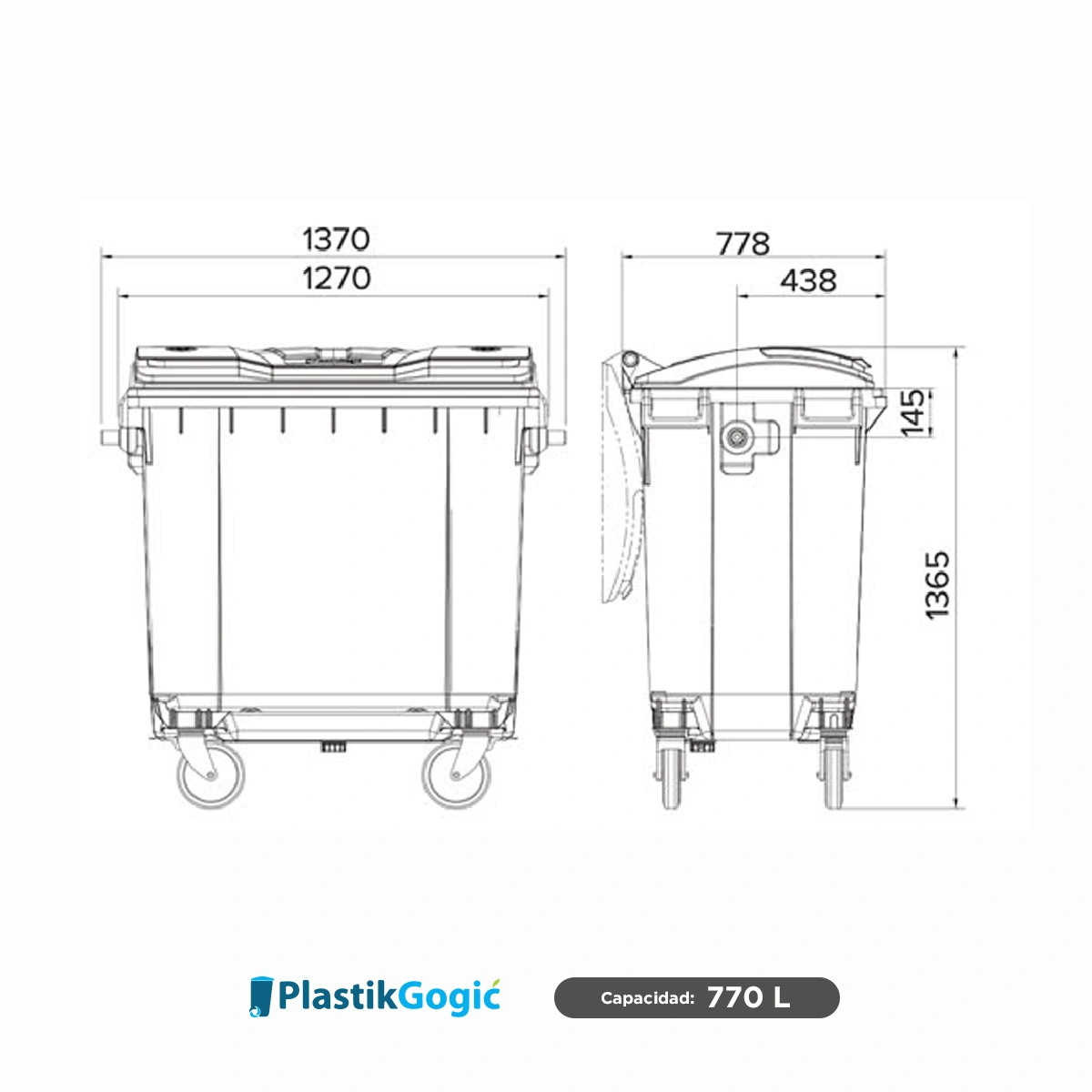 Los contenedores con 4 ruedas de 770 L su diseño personalizado para las normas del Gobierno de la marca Plastik Gogic, están hechos de polietileno de alta densidad (HDPE), lo que les confiere una gran durabilidad y resistencia a impactos, así como a diversas condiciones climáticas, son una opción ideal debido a su robustez y facilidad de uso.