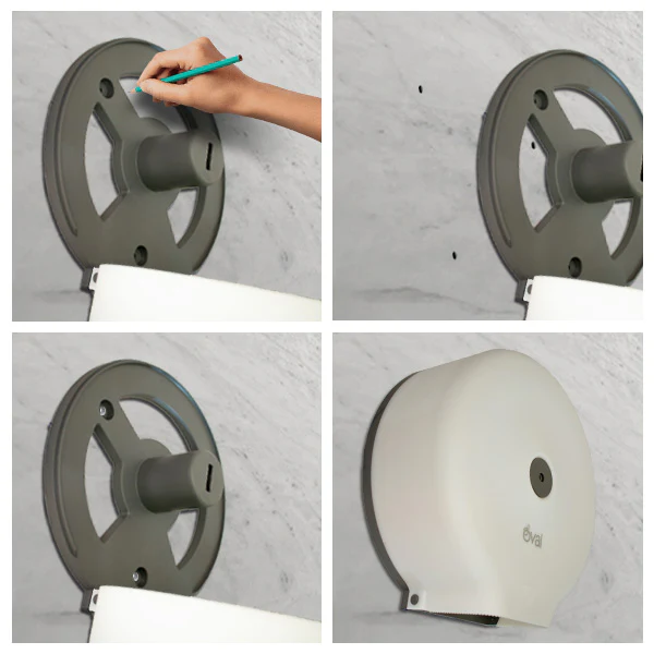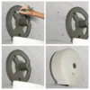 Capacidad para rollos de hasta 10 cm de ancho y de hasta 300 mts de largo. Elaborado con plástico ABS de uso rudo/industrial; diseño estético y práctico para baños públicos de alto tráfico. Dosifica papel higiénico jumbo universal, hoja doble o sencilla. Tapa semi transparente con un acabado rugoso que evita ralladuras. Con cerradura al centro del despachador. Ideal para baños públicos,restaurantes, oficinas, industrias, hospitales, clubes deportivos, hoteles, salones de fiestas, gasolineras. Kit de montaje 3 pijas y taquetes incluidos