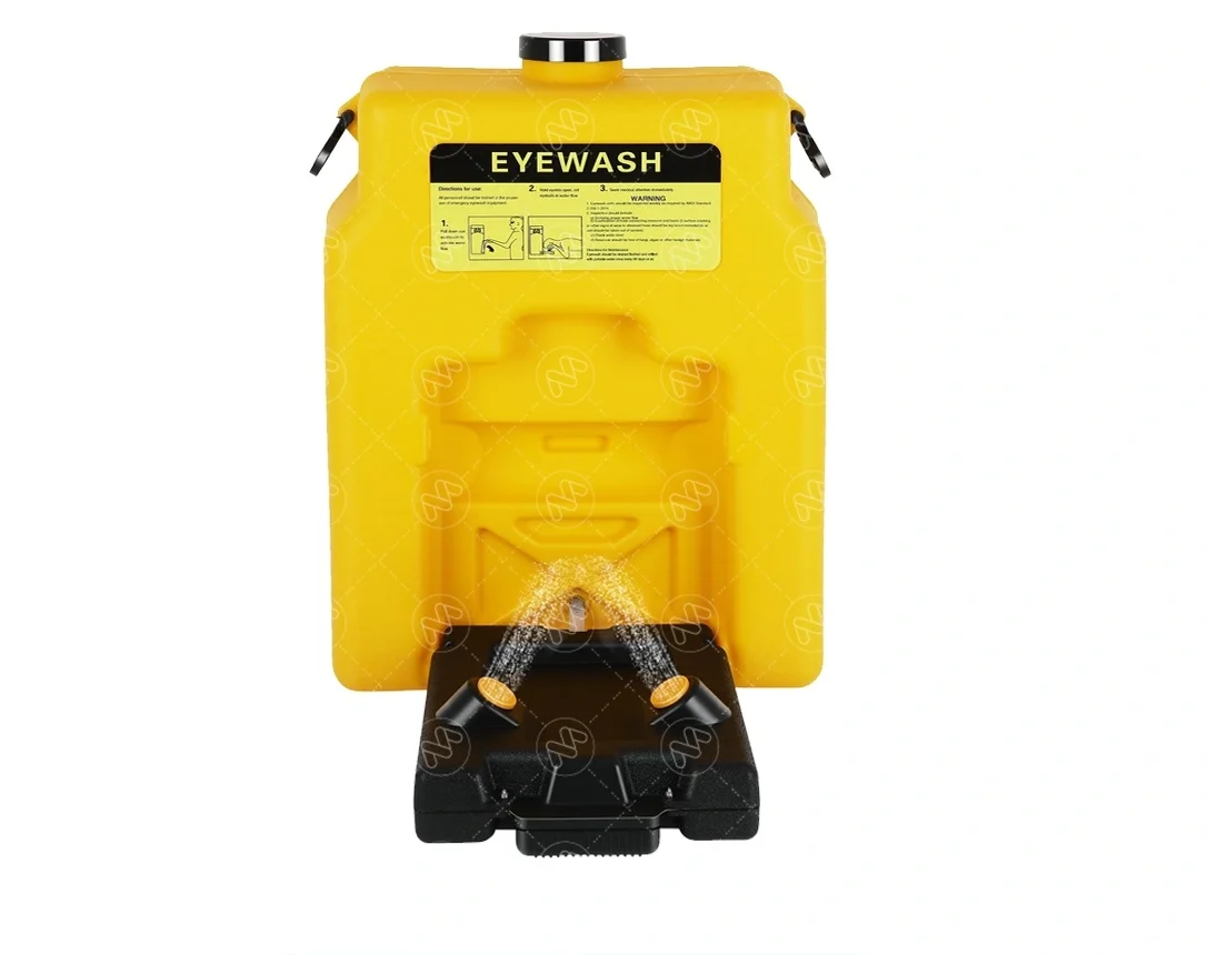 Estación de lavado de ojos (también conocido como lavaojos) portátil de 14 galones (53 L), diseñada para cumplir con los estándares OSHA, proporciona un flujo continuo de agua durante 15 minutos, ideal para enjuagar contaminantes de los ojos en entornos industriales, laboratorios y áreas de alto riesgo.