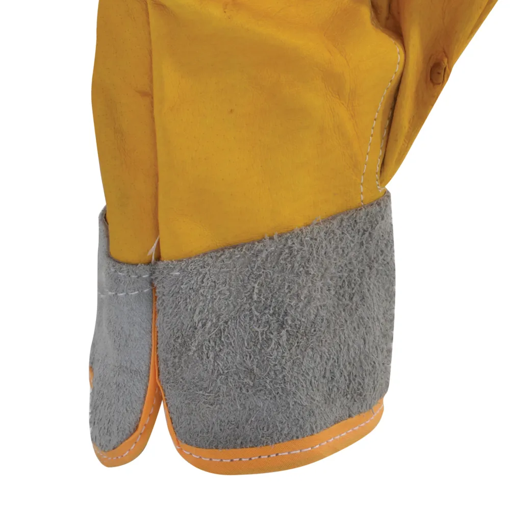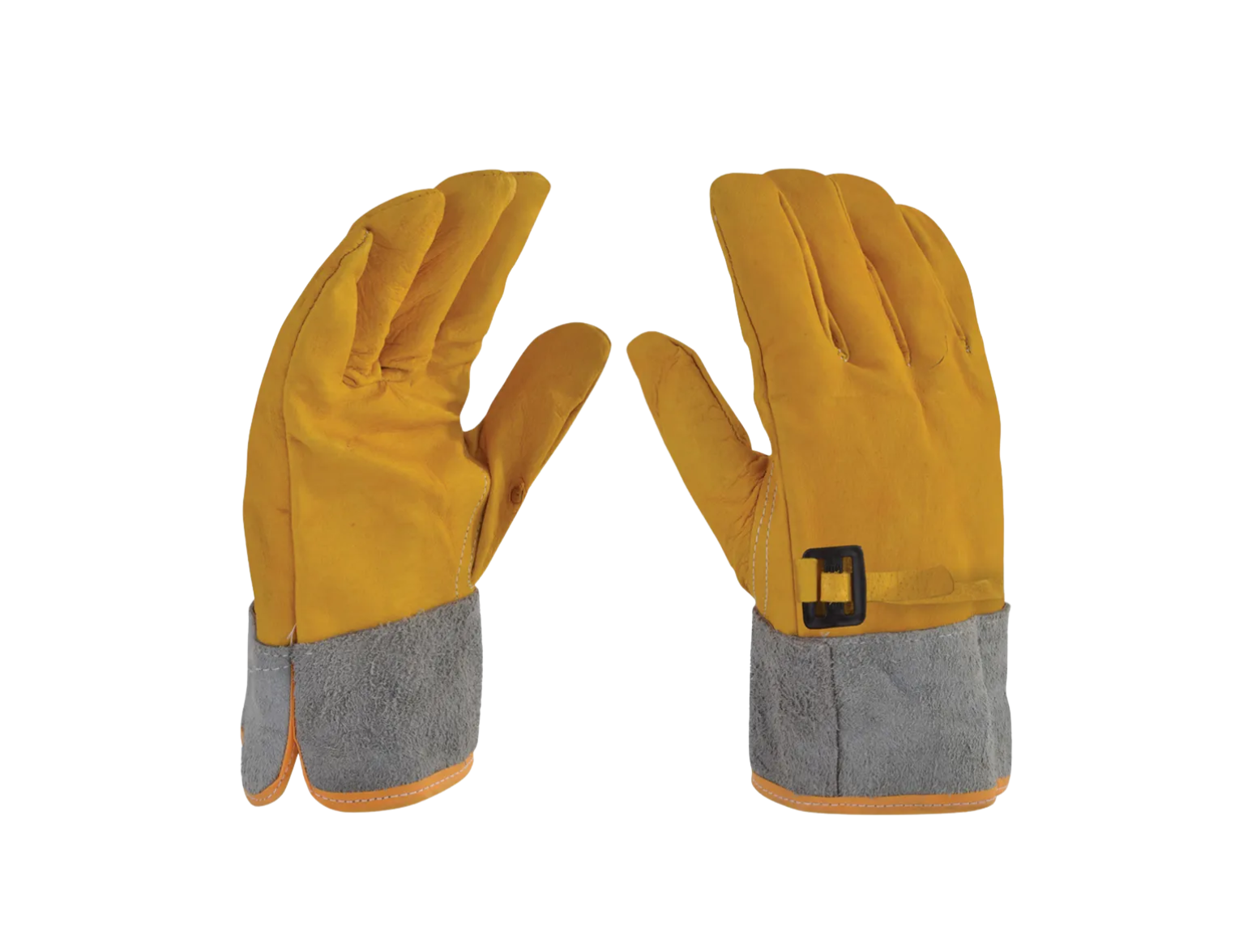 Elaborado con flor de piel de cerdo curtida al cromo, este guante combina flexibilidad y resistencia. Cuenta con cintilla ajustable y puño abierto con aplicación de carnaza, que proporciona soporte adicional sin limitar el movimiento.