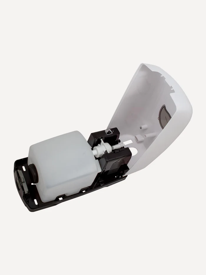 Automático, capacidad de 1 LT. Se activa con sensor bajo el despachador. Dosifica aprox. 1 ml en cada activación.utiliza 6 pilas AA dan 30,000 disparos. Tanque desmontable. Tapa con cerradura tipo botón.con posibilidad de convertirse en jabonera de espuma, cambiando la válvula.