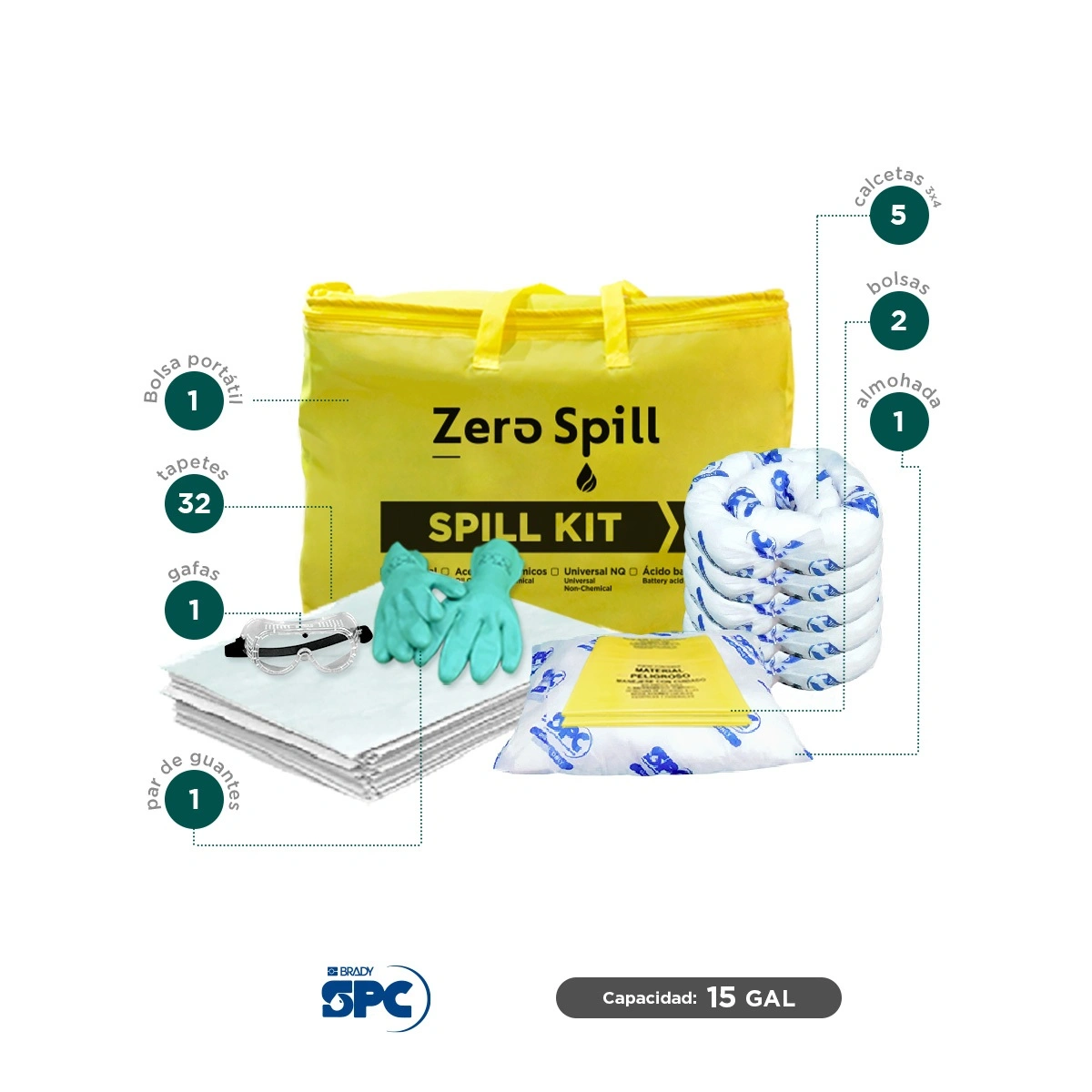 Kit antiderrames portátil para respuesta a emergencias para aceite y derivados del petróleo SPC 15 Gal | absorción 17 Gal