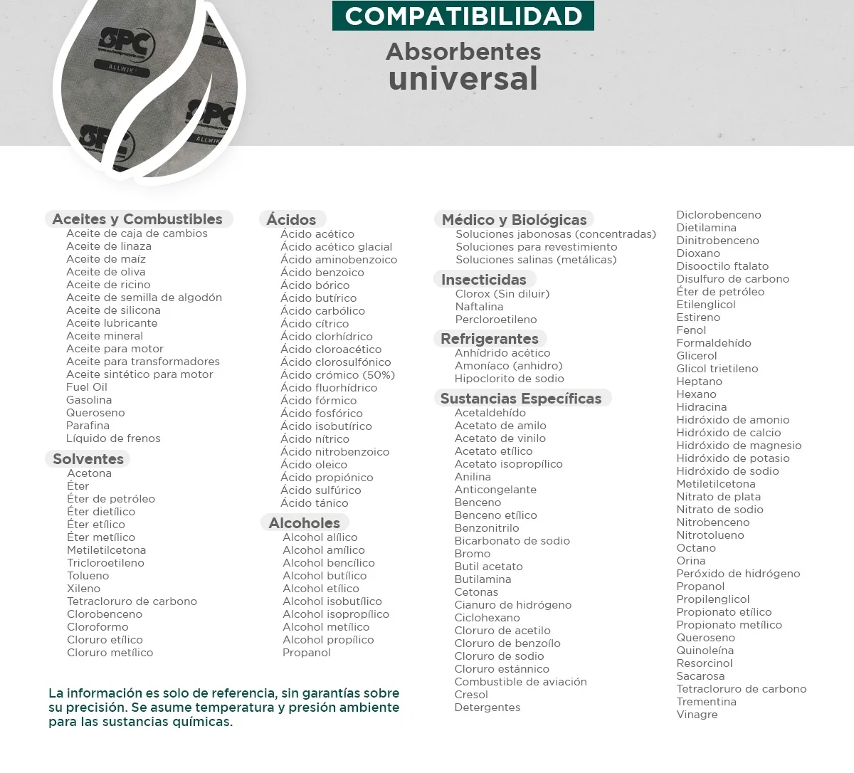 - (1) Almohada absorbente universal 18″x18″ SPC (SKU: AW1818).