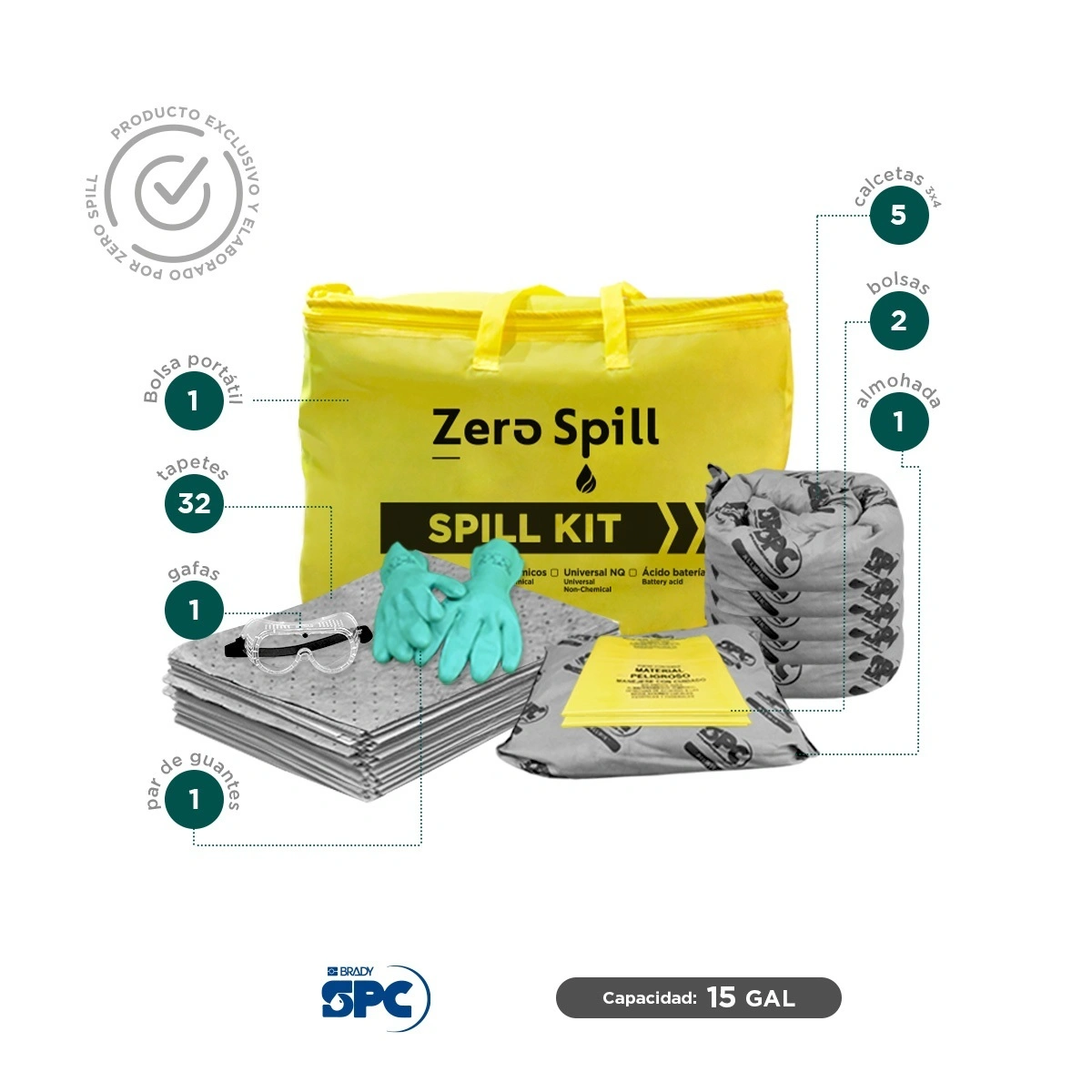 El Kit antiderrames portátil universal de 15 Gal y absorción de 16 Gal de Brady SPC combinan absorbentes, accesorios, EPP y directrices para que se pueda preparar para emergencias cuando ocurra un derrame.