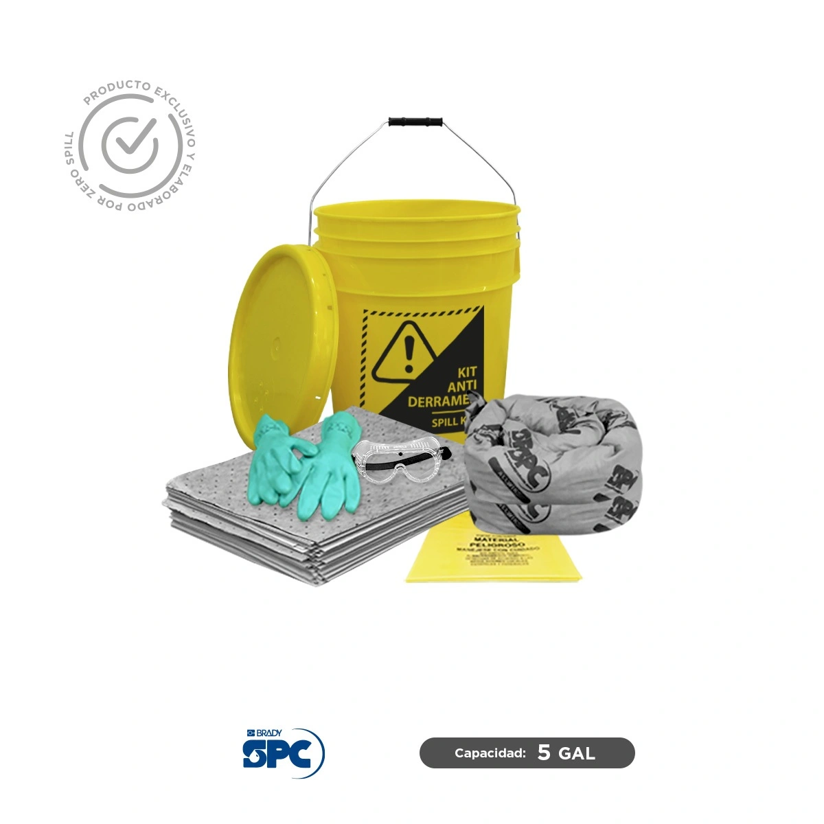 - La cubeta de 5 galones es ideal para respuesta a derrames chicos, de acceso fácil y se puede volver a usar.