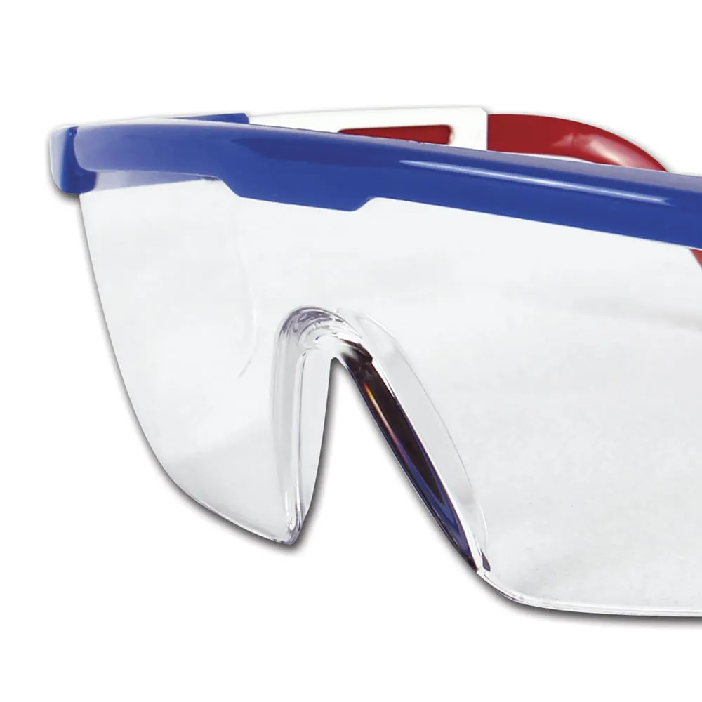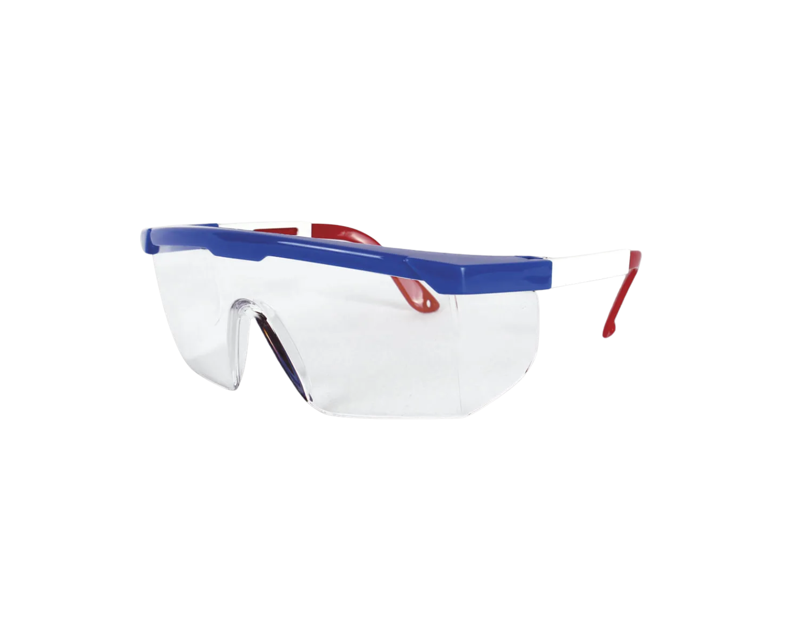 Gafas de seguridad industrial elaboradas en policarbonato oftálmico claro. Su diseño cuenta con protección lateral, armazón de tres colores y sistema retráctil de ajuste para mayor seguridad y confort. Aptas para uso prolongado, con filtro UV y excelente resistencia a impactos y rayaduras.