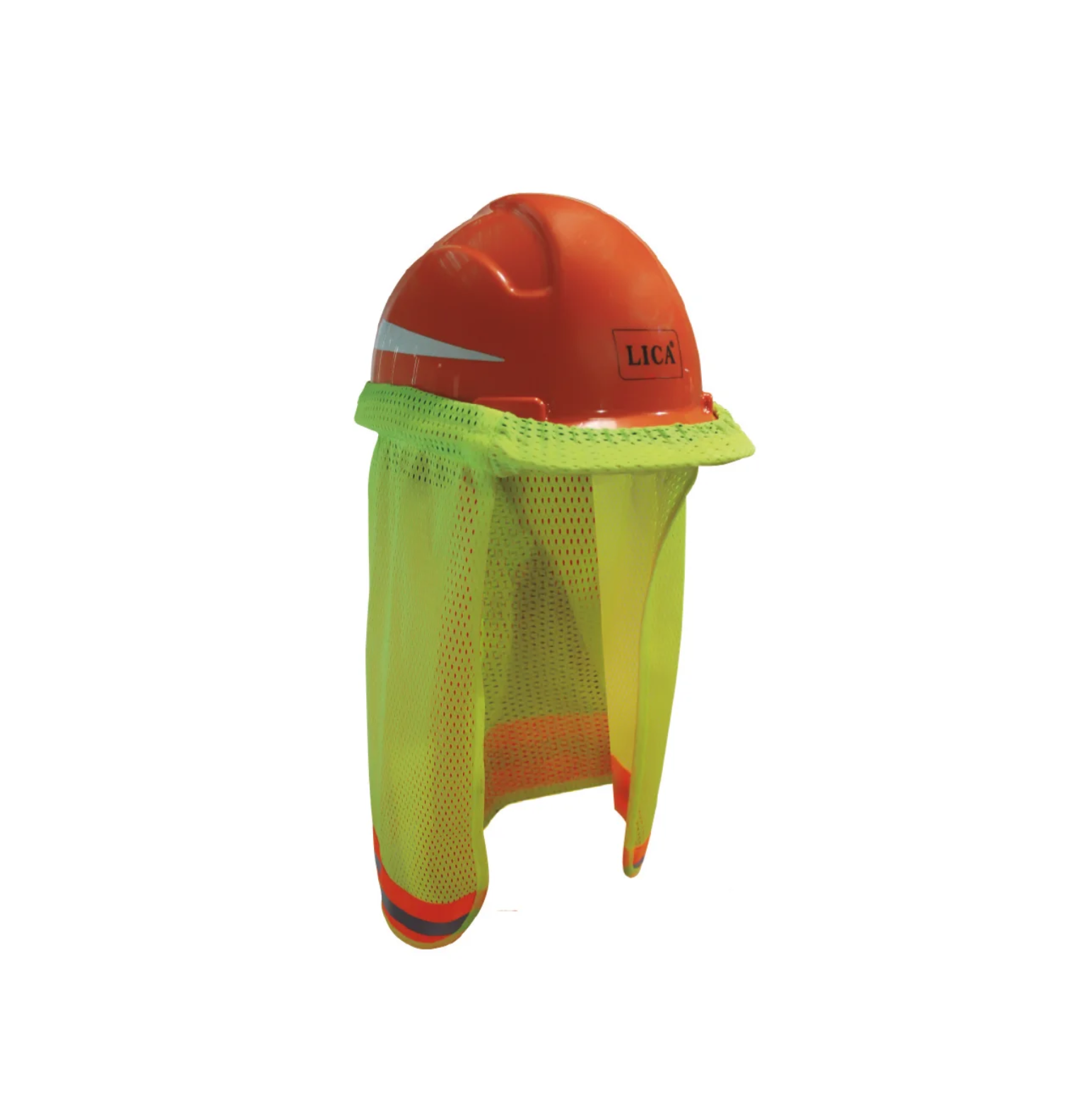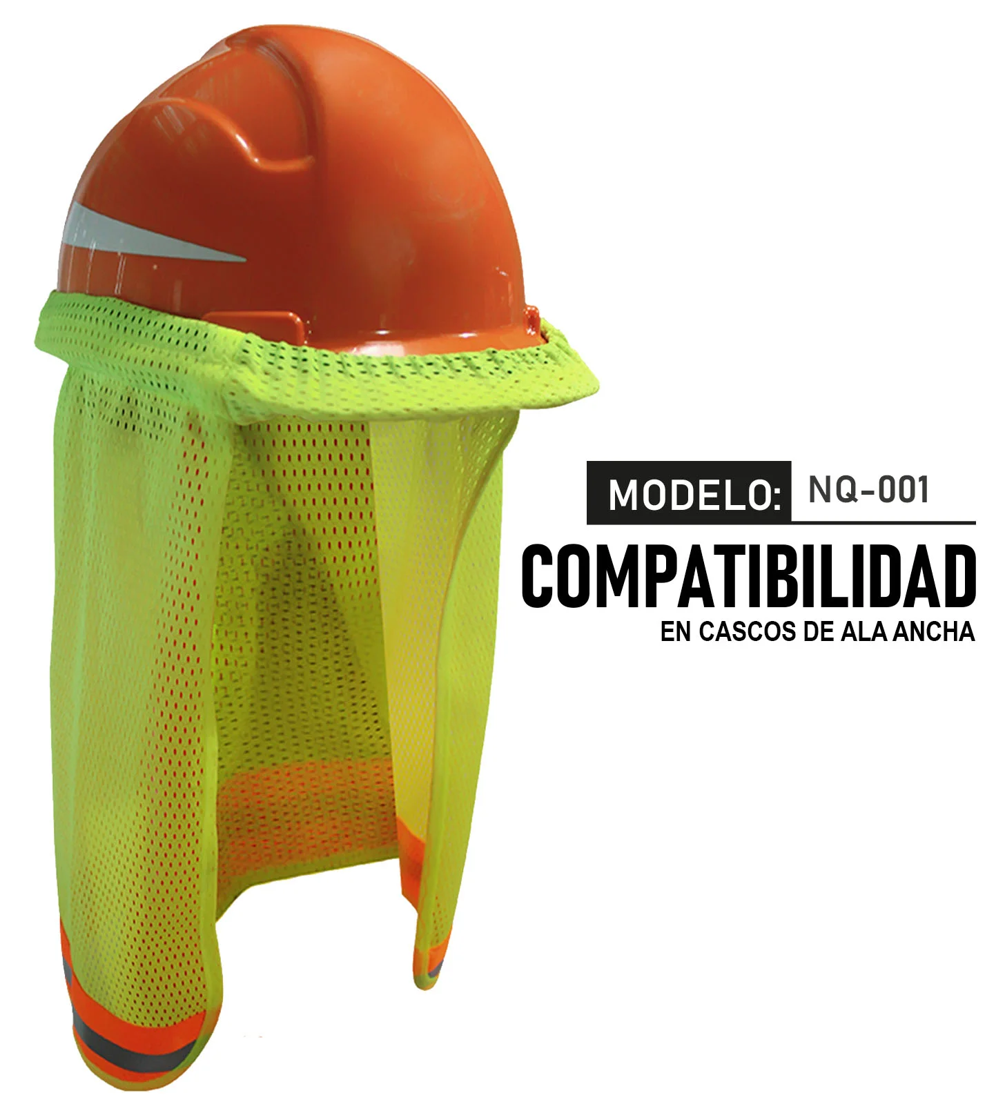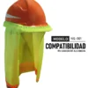 Nuquera de malla para casco de seguridad en color amarillo con reflejantes y líneas fluorescentes naranjas. Está elaborada con un 90% de poliéster, un 8% de polipropileno y un 2% de PVC.Diseñada para colocarse en el casco de seguridad de ala ancha para brindar protección al usuario, garantizando su resistencia a los rayos UV. Además ayuda al trabajador a prevenir fatiga.