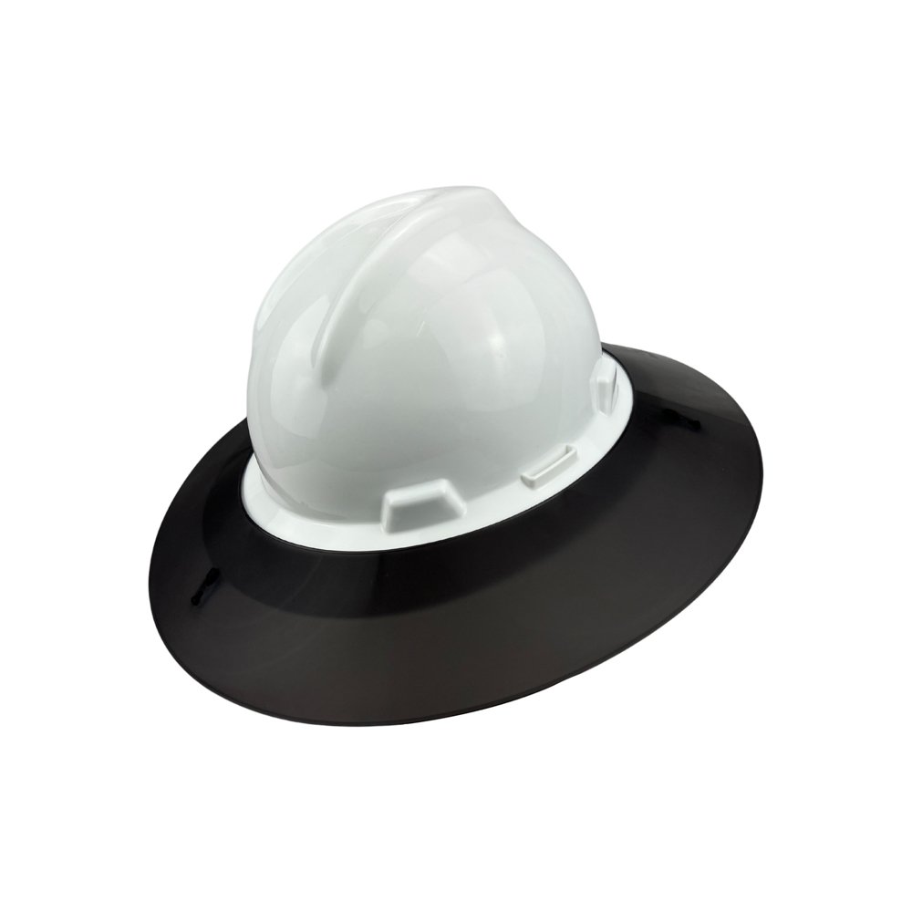 La visera para casco de seguridad está diseñada para ofrecer protección solar efectiva en trabajos al aire libre. Compatible con cascos de ala ancha, esta visera cuenta con un sistema de clips que facilita su instalación rápida y segura. Su diseño frontal translúcido permite mantener una visión clara mientras bloquea los rayos solares. Fabricada para uso rudo, es ideal para aplicaciones industriales y de construcción.